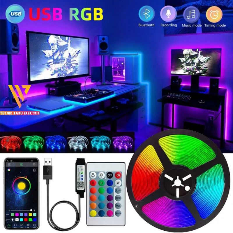 LAMPU LED STRIP RGB 5V USB SMD 5050 IP44 BACKGROUND TV 1M - 5M BLUETOOTH REMOTE PC MEJA