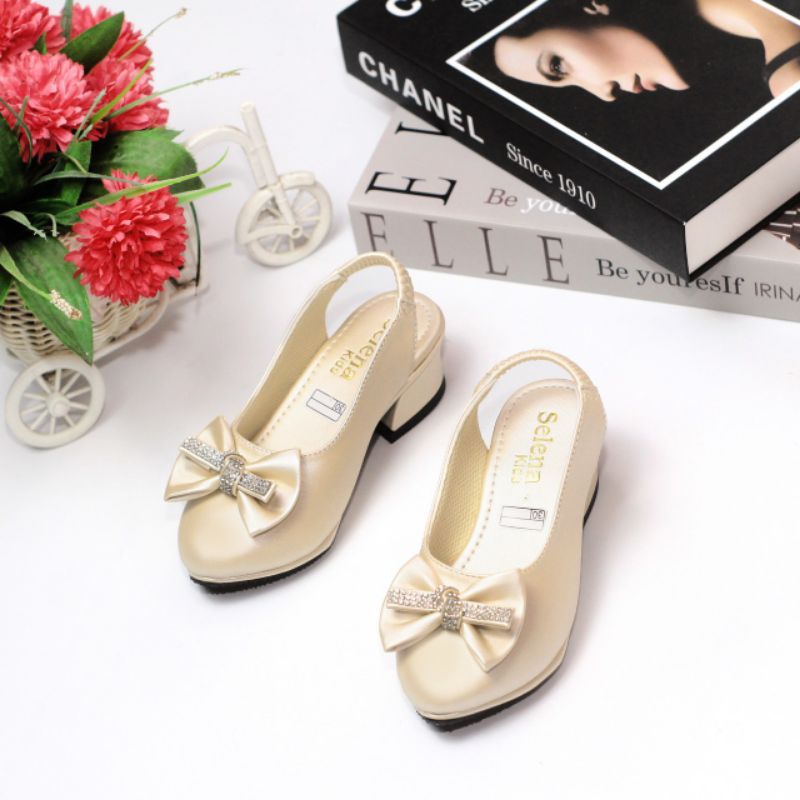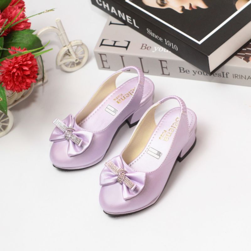 Sepatu Sandal Pesta Anak Perempuan Hak Tahu Pita Permata Karet Kagura Kp13