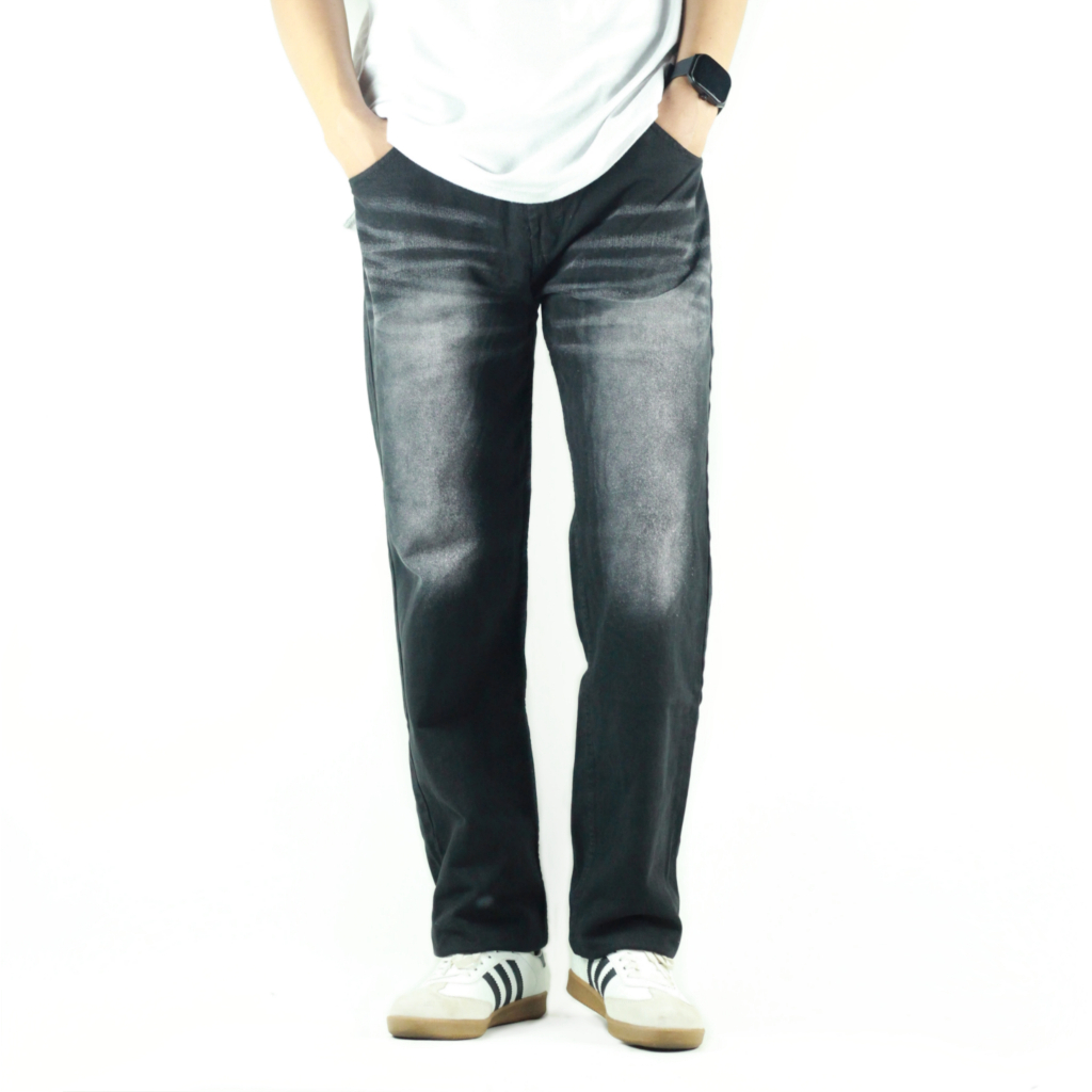 Celana Jeans Prewash Denim Black Jazz Whisker Standar Basic Reguler Pria 28 44