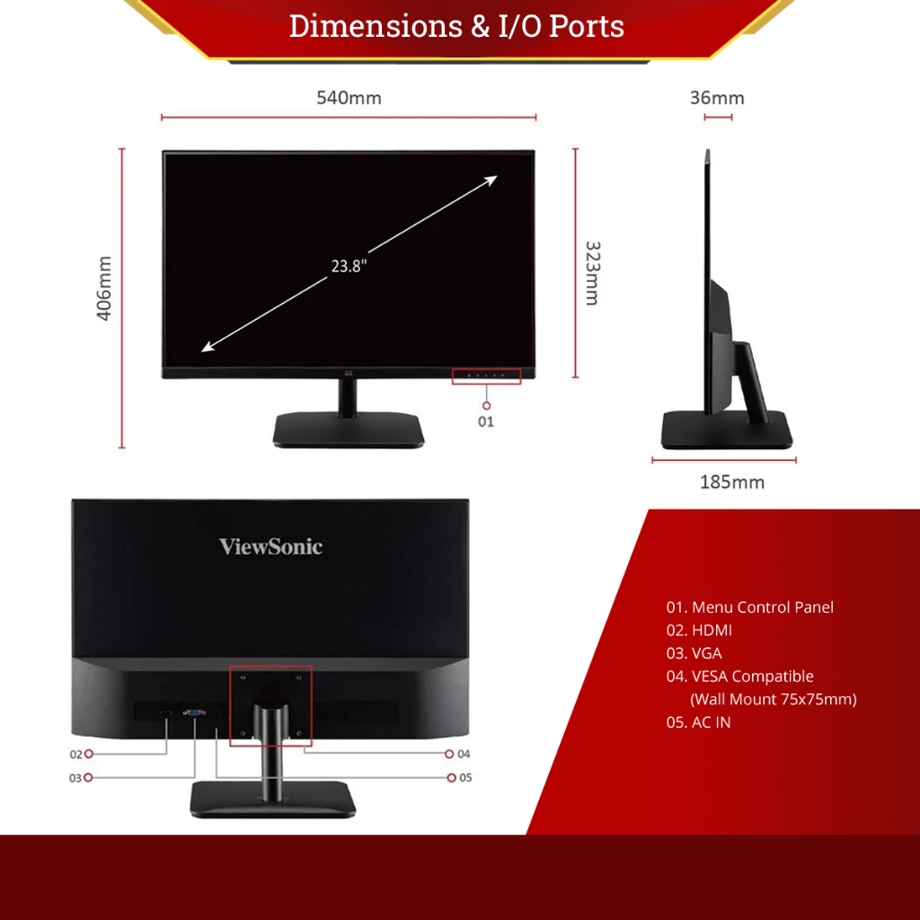 ViewSonic 24” IPS Monitor VA2432-H | 1080p | Frameless | 100Hz