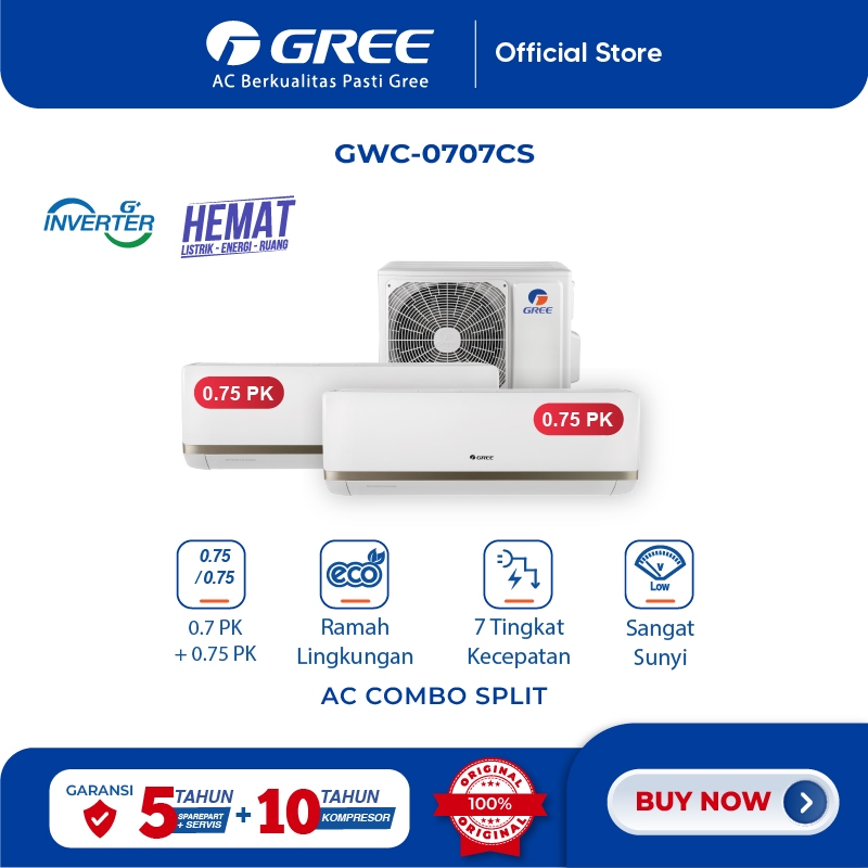 GREE AC Combo Split - Inverter - GWC-0707CS(S) - Putih (2 INDOOR 3/4 PK + 3/4 PK & 1 OUTDOOR)