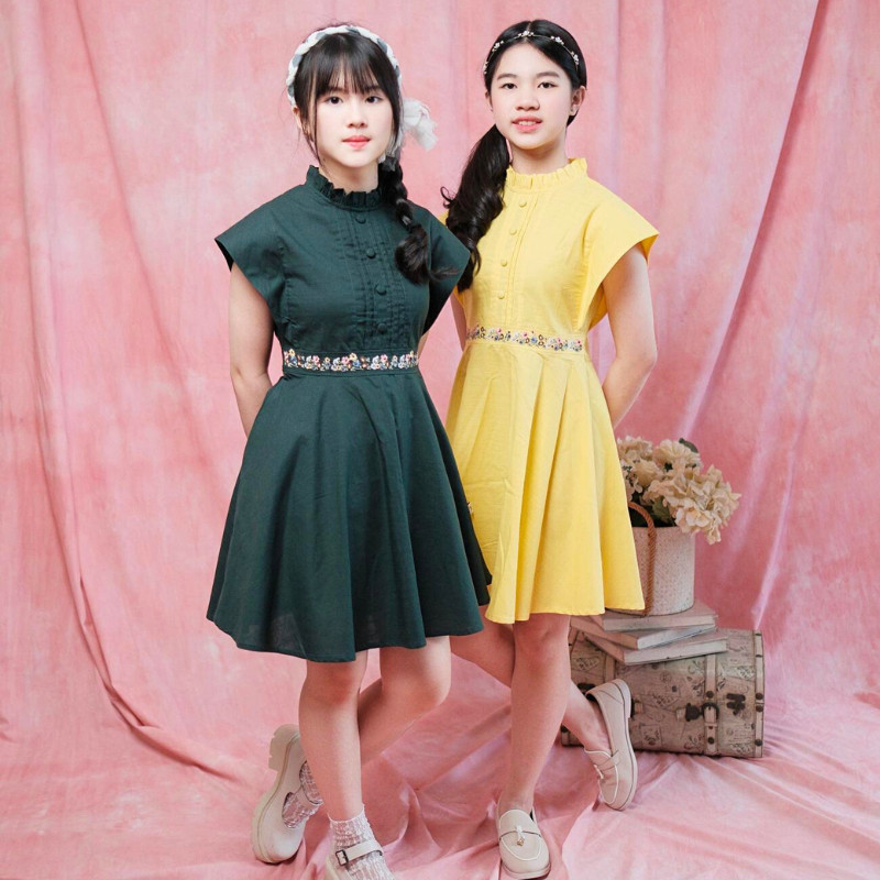 Queenkids - Sunny Dress - Pakaian Dress Anak Perempuan Korean Style - Dress Natal Anak Perempuan
