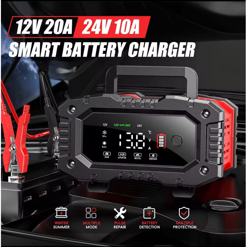 [Star] FOXSUR 20A Charger Aki Mobil Motor Truk 12V 20A - 24V 10A Smart Charger 7 Stage Pengisian Original