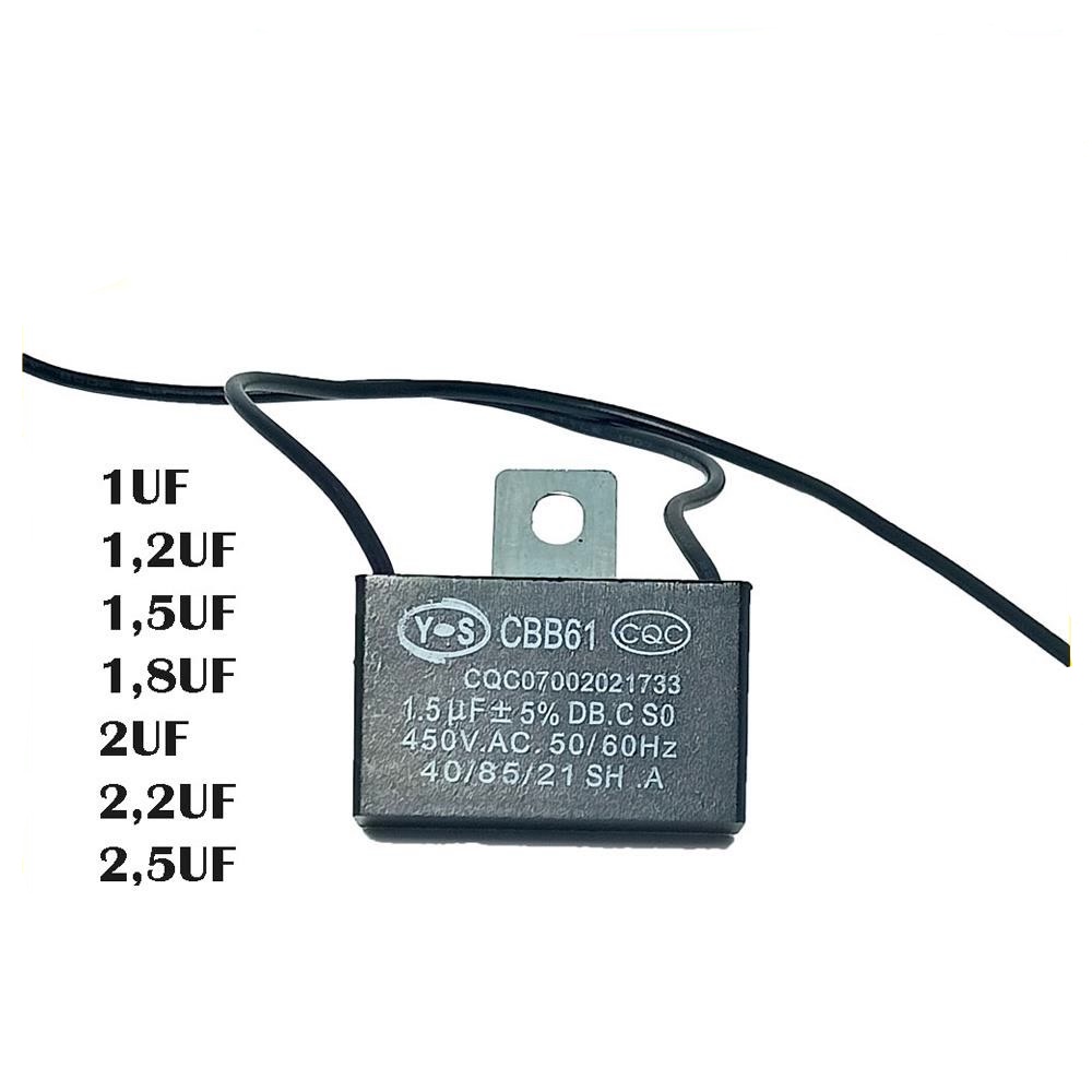 1 UF 400 VAC, 1,2 UF 450 VAC, 1,8 UF 450 VAC, 2,2 UF 450 VAC, 3 UF 450 VAC, 4 UF 450 VAC, 5 UF 450 VAC, 1,5 UF 450 VAC, 2,5 UF 450 VAC, 2 UF 450 VAC