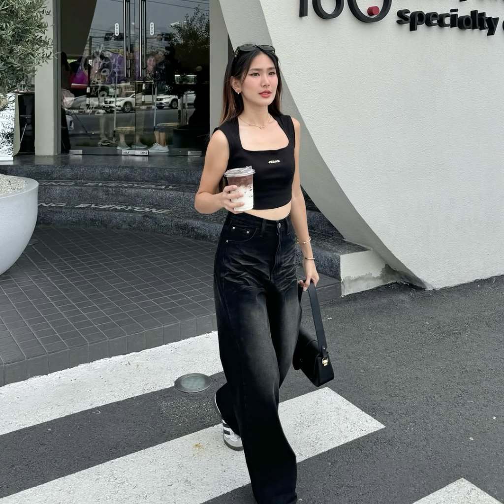 Celana Jeans Highwaist Oversize Baggy Loose Wisker Highwaist Jeans Retro Korean Vintage Denim Unisex
