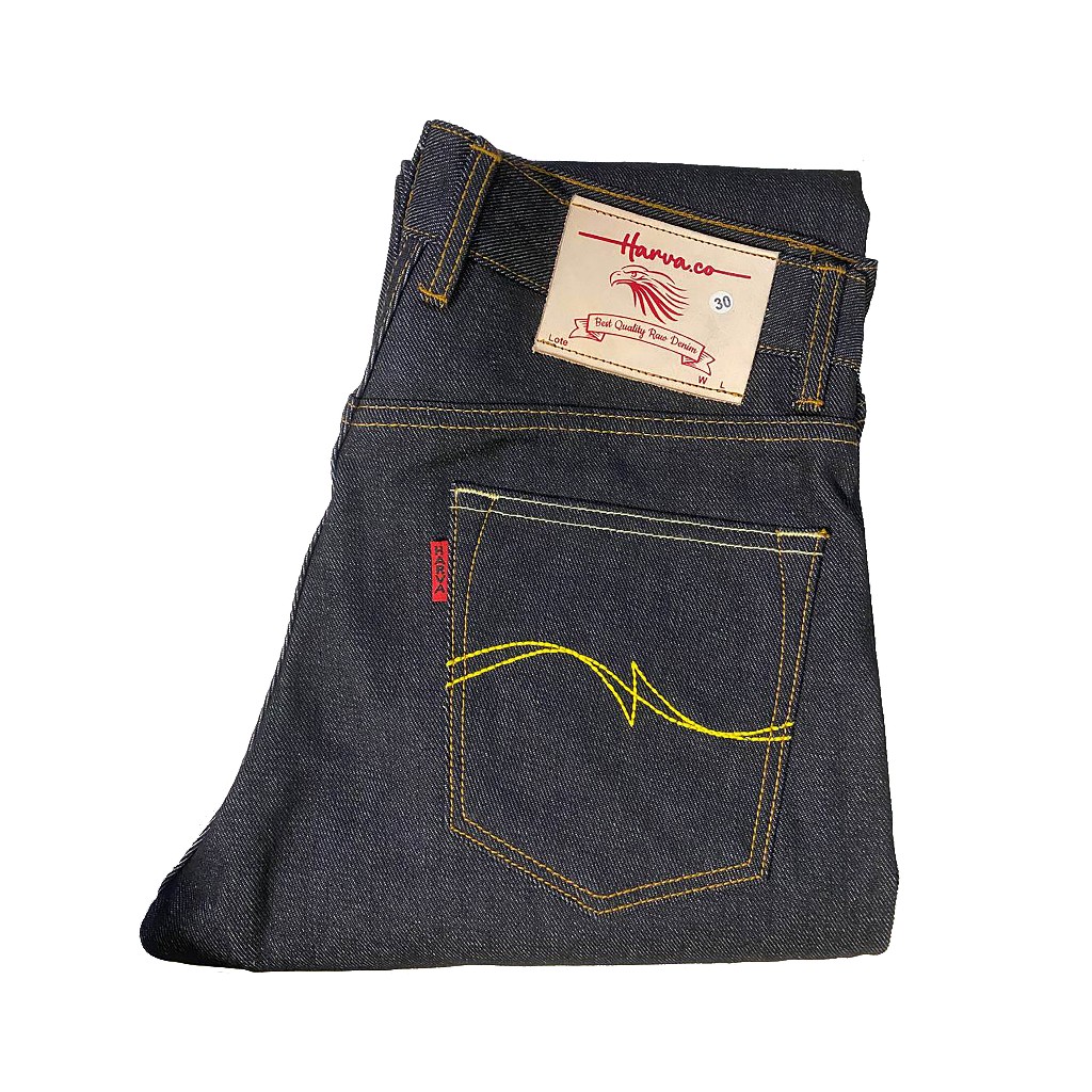 celana raw denim selvedge accent 15 - 16 oz slim straigh non streacth.