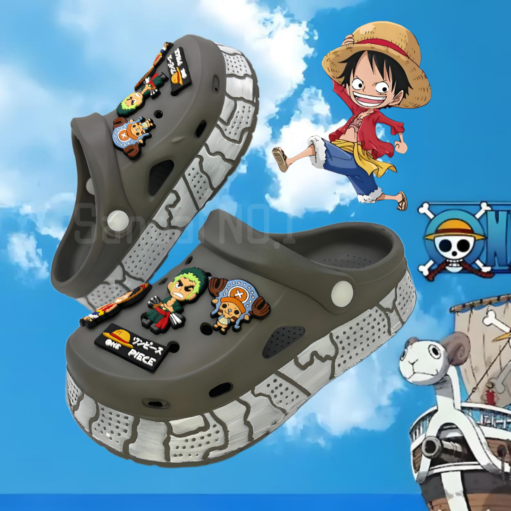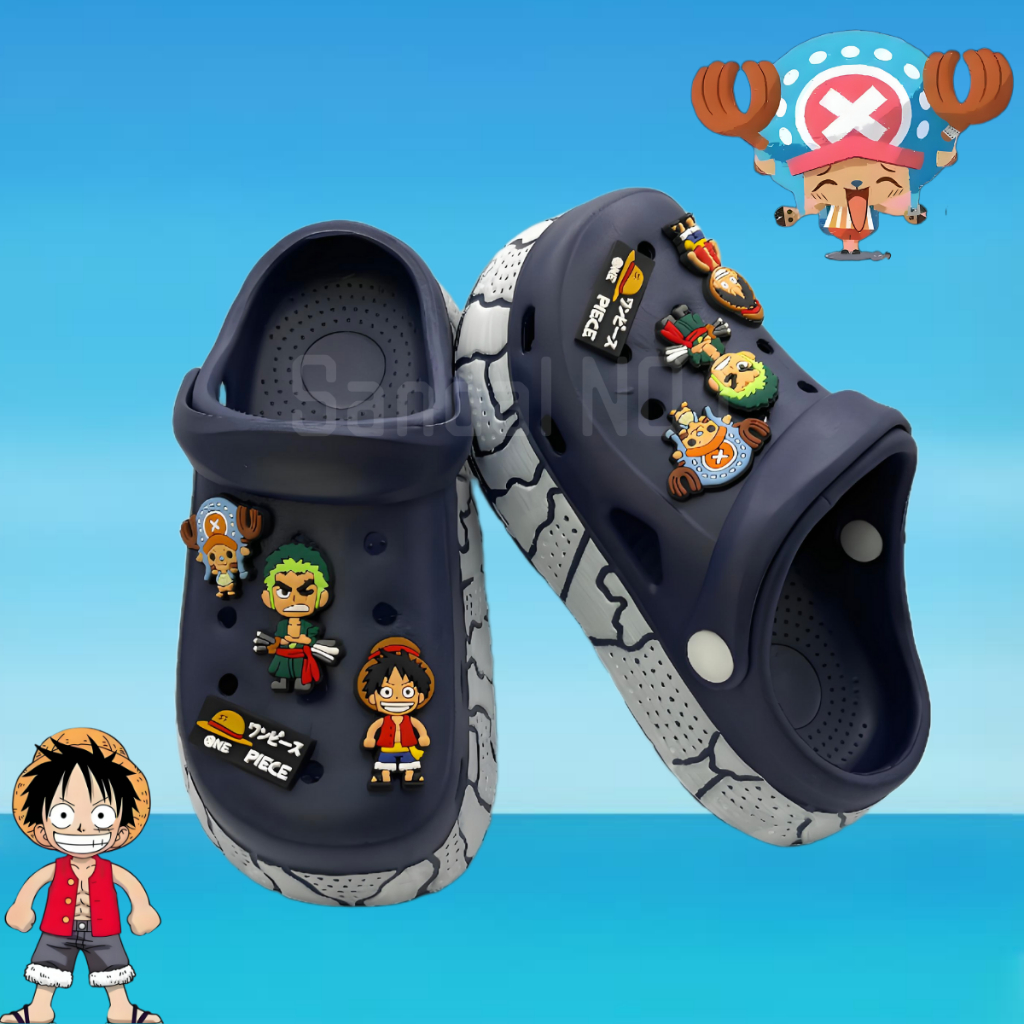 Sandal Anak Laki-Laki One Piece Terbaru Sandal Anak Sol Tebal Anti Selip Sandal Jibbitz