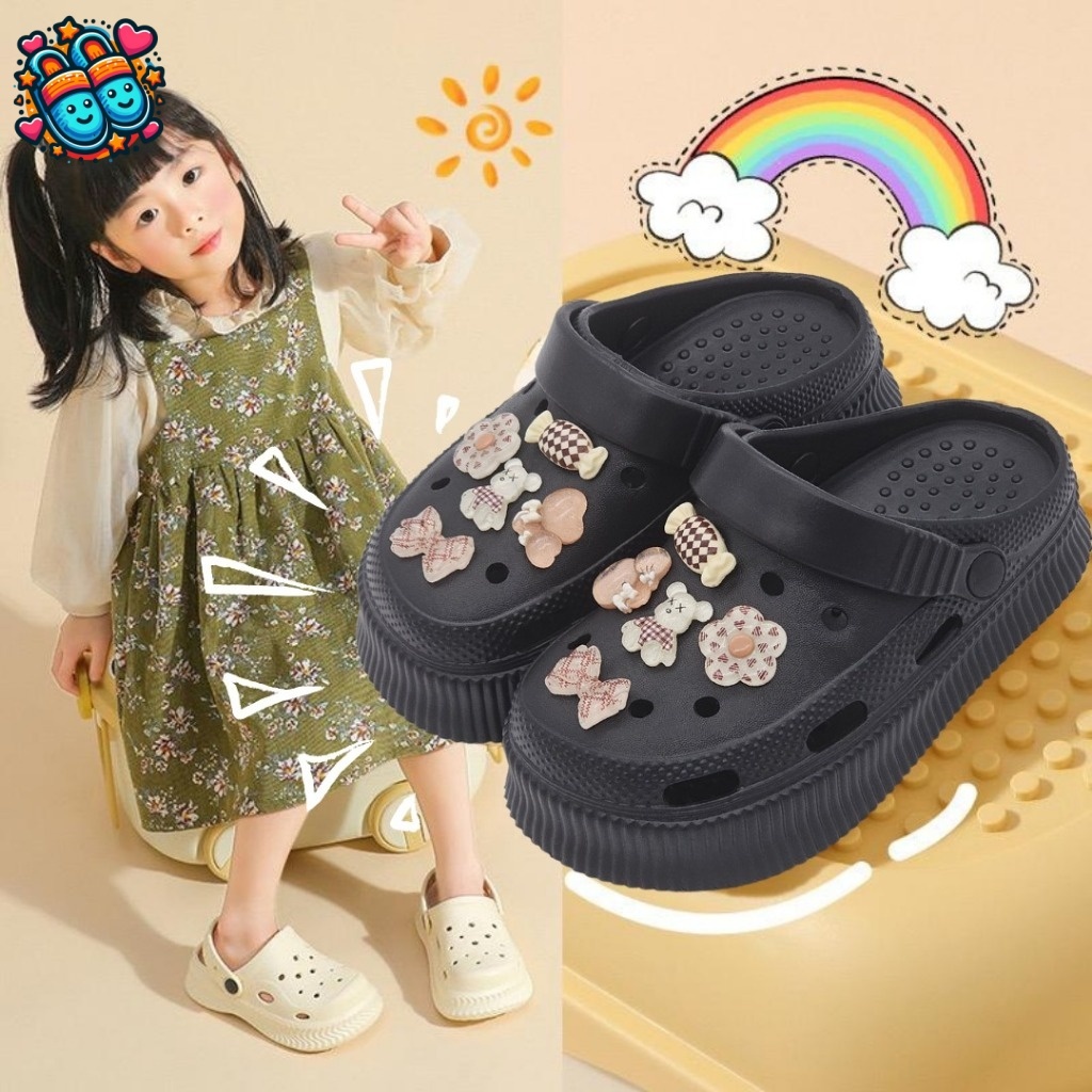Sandal Anak Perempuan Untuk Pakaian Luar Sol Tebal Anti Lembab Menambah Tinggi Badan Anti Licin Sandal Jari Kaki Kartun