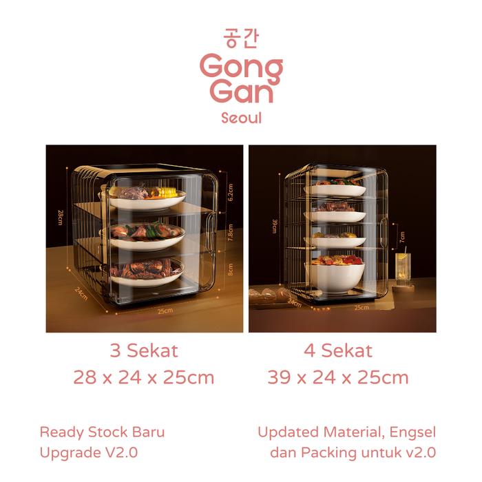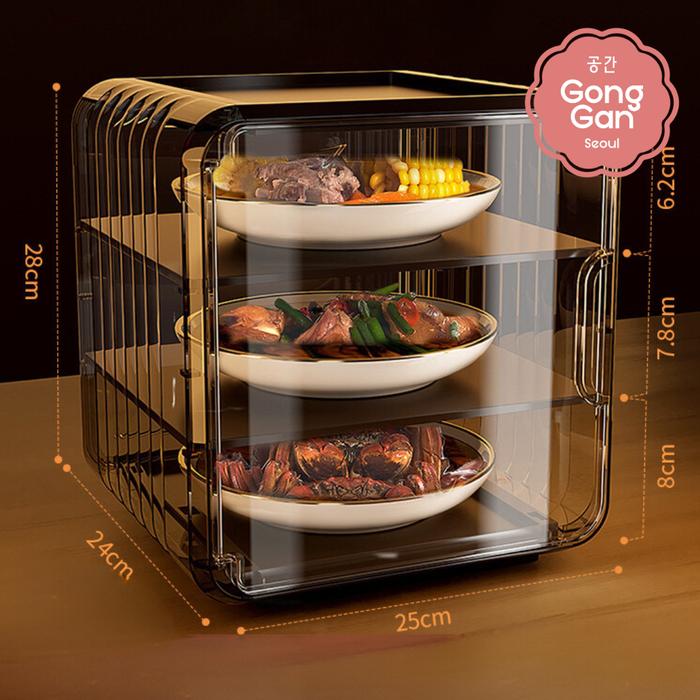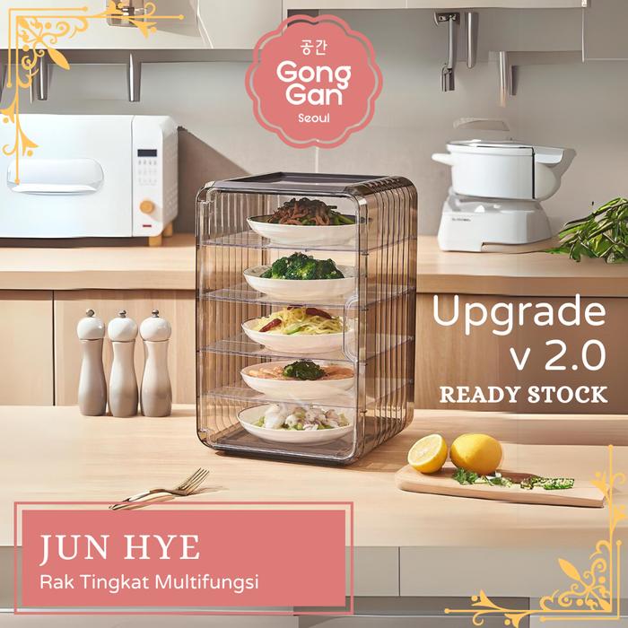 【GONG GAN】JUN HYE PENYIMPANAN LAUK TINGKAT TUDUNG SAJI MAKANAN SUSUN LEMARI TUDUNG SAJI - 4 TINGKAT