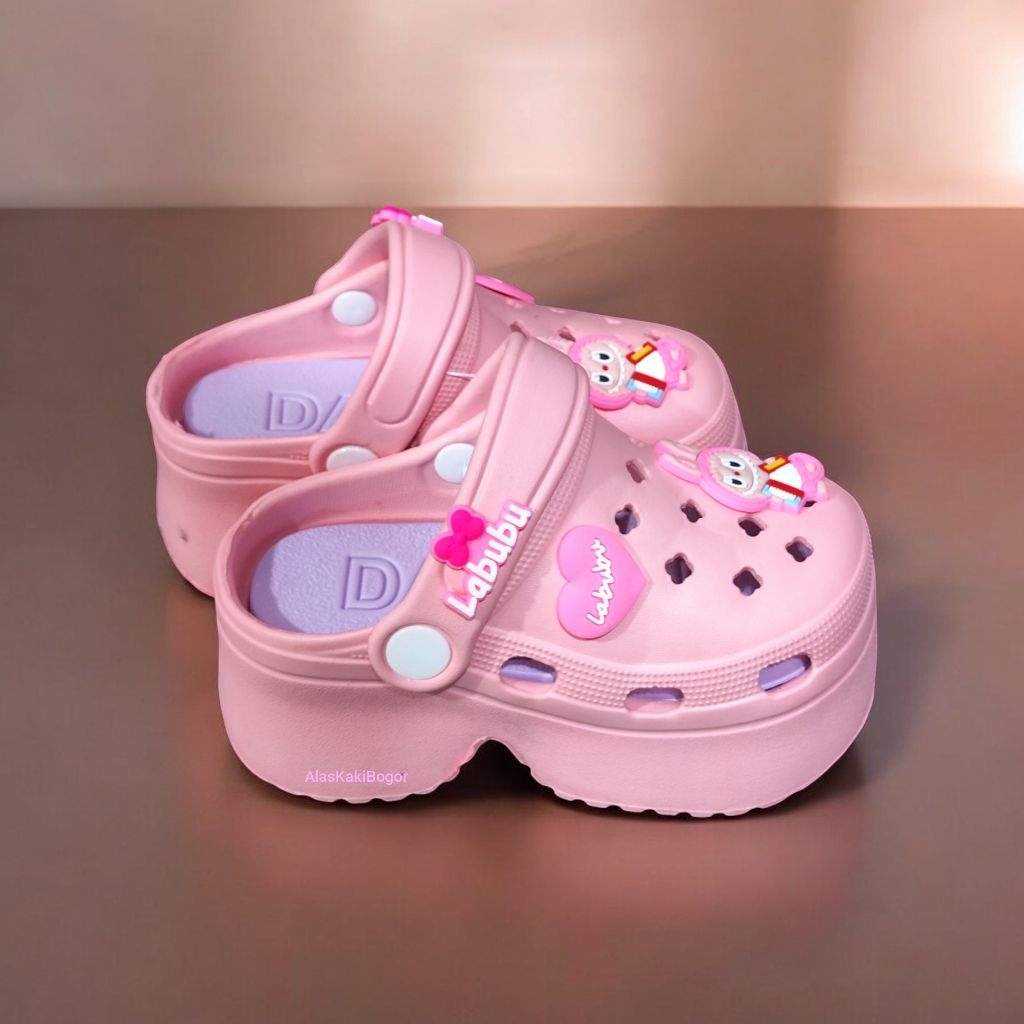 Sandal Baim Crocs Anak Perempuan Labubu Tinggi Terbaru Sendal Slop Anak Cewek Tali Belakang Rubber Non Slip Eva Fashion