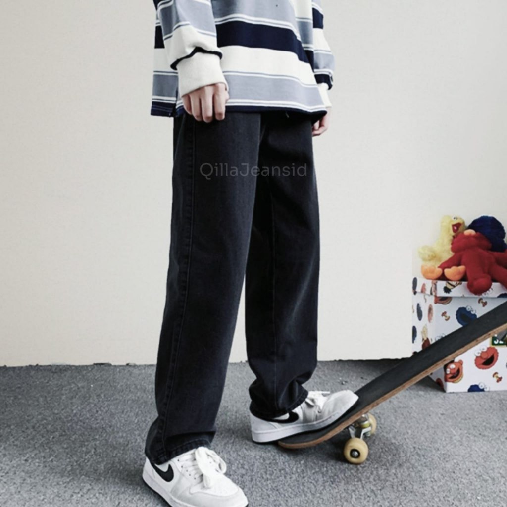 Celana Jeans Pria Baggy Pants Korean Style Oversize Loose Blue Jeans Straight Kulot Boyfriend