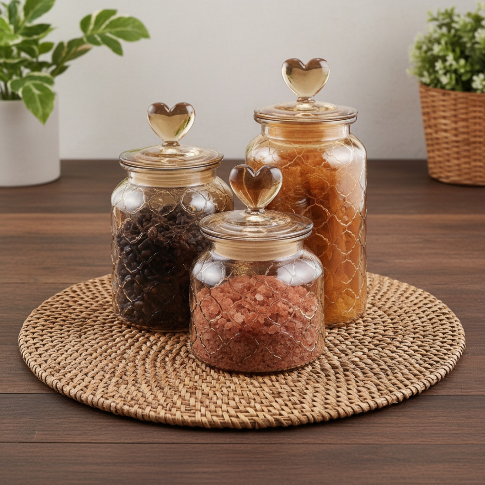 Toples kaca set Glass Toples Kaca 3 In 1 Love Lebaran Idul Fitri Kedap Udara Penyimpanan Makanan Ringan Toples Kue