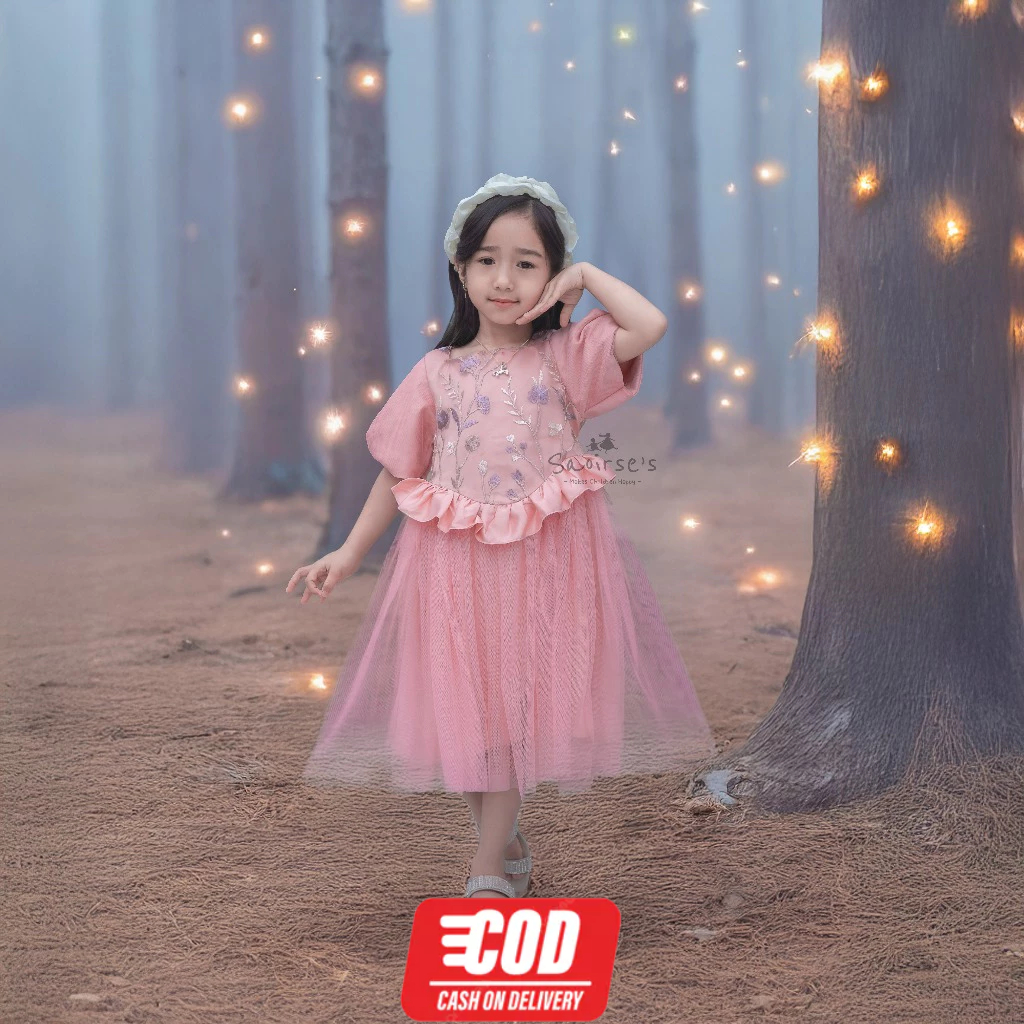 Saoirse'S Calista Dress - [] Gaun Pesta Anak Mewah 1-8 Tahun Brukat Bunga Kekinian Premium Natal