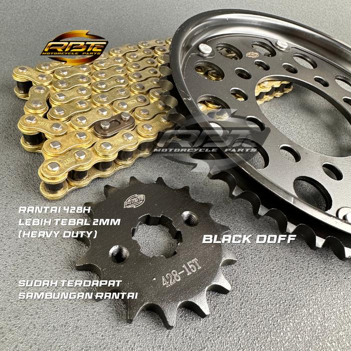 GEAR GIR SET PAKET CBR 150R 6LUBANG CBR150R K45N K45R CB150X CB 150R NEW - CBR 6 LUBANG, BLACK DOFF