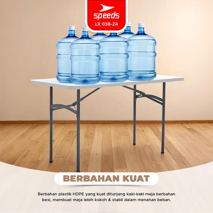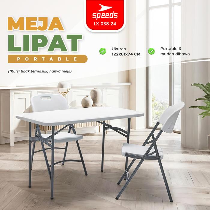 SPEEDS MEJA PERSEGI PANJANG LIPAT 122X61X74CM PLASTIK FOLDING TABLE WATERPROOF INDOOR OUTDOOR PAMERAN SERBAGUNA BESAR MEJA MAKAN 038-24 - 86X86X74CM.
