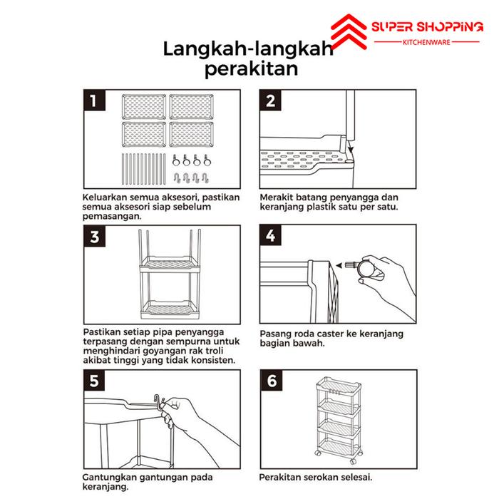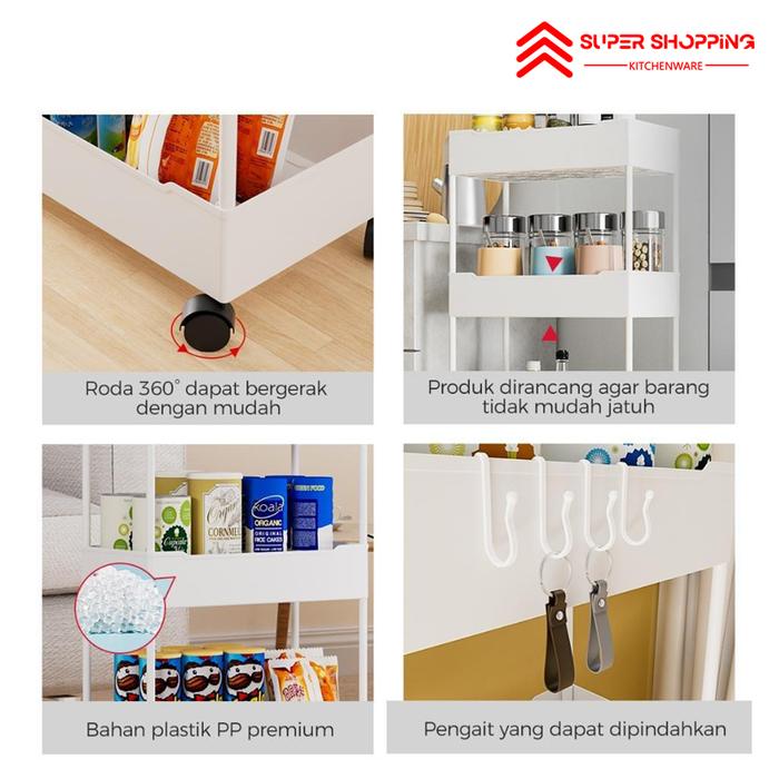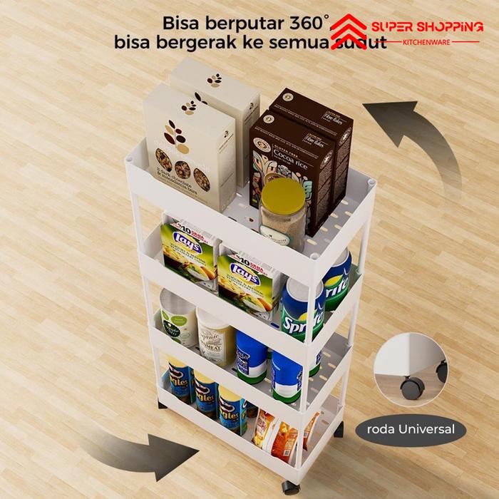 SUPER SHOPPING RAK TOILET RAK SERBAGUNA SQUARE RAK DAPURRAK SUSUN 4 TINGKAT DENGAN RODA - 4 SUSUN RODA PUTIH