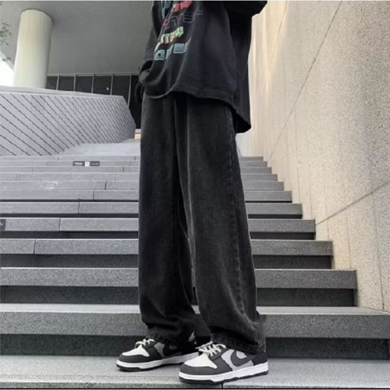 Celana Jeans Pria Panjang Snow Black - Celana Jeans Korea Style Original Loose Straight-Celana Jeans