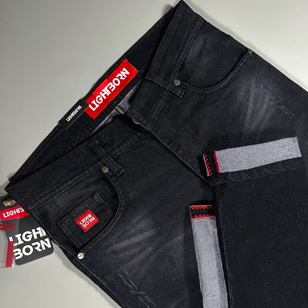 LIGHTBORN Celana Denim Pria Roger Wolfy Black Slimfit Selvedge, Long Pant Men