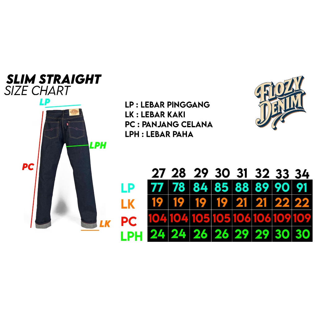 Flozy Celana Jeans Raw Denim Selvedge Accent 15oz (Bonus Kaos + Tas) Slim Straight