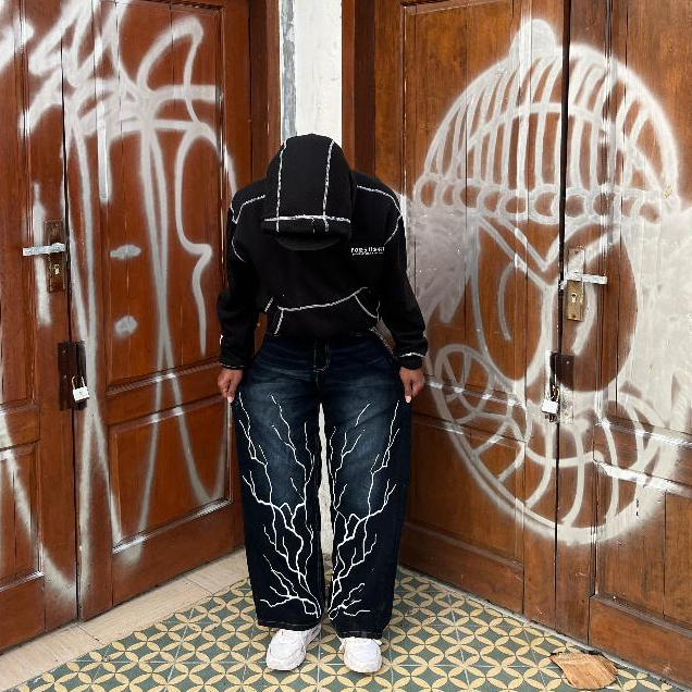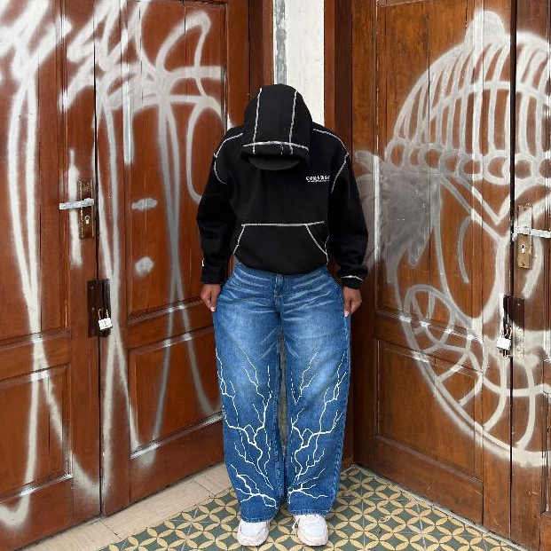 (UNISEX) Celana Jeans Wide Leg Wisker Lebar Gombrong Denim Panjang Nyaman