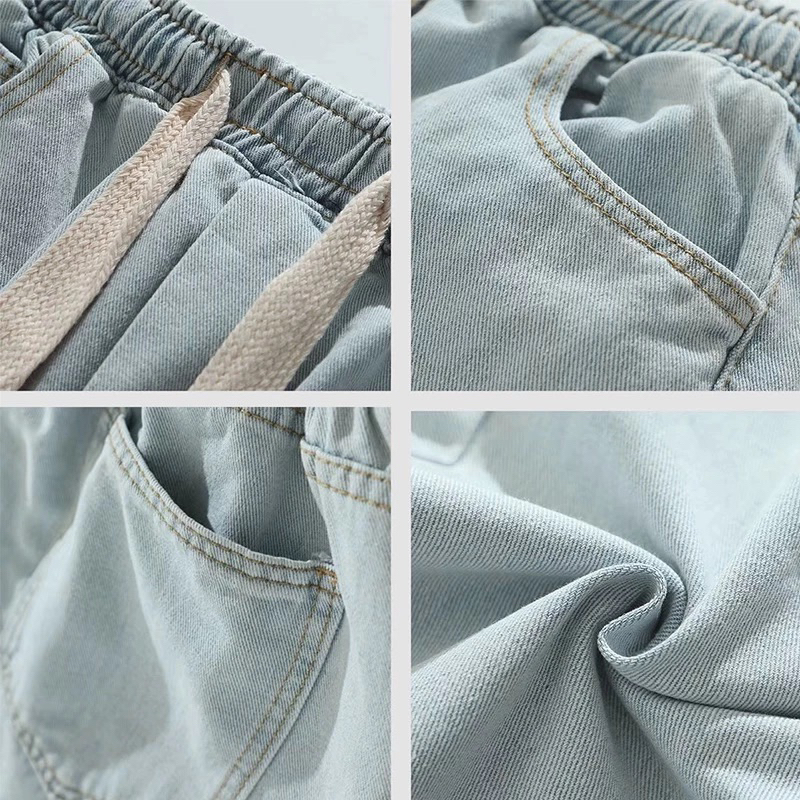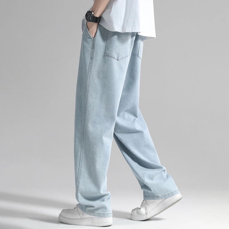 Celana jeans pria pinggang karet korean style loose pants kulot jeans biru muda oversize Jumbo Tali Serut Wide leg celana jeans cowok panjang nyaman Santai denim premium
