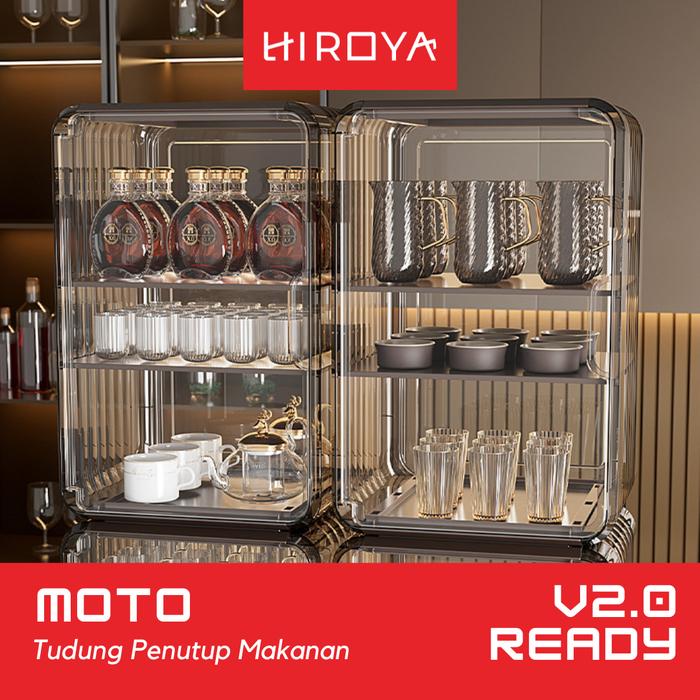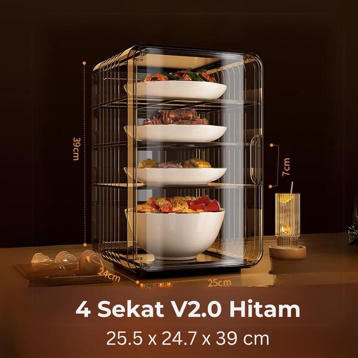 HIROYA - MOTO TUDUNG SAJI KUE ROTI LEMARI PENYIMPAN LAUK SERBAGUNA PENYIMPANAN MAKANAN TINGKAT TUDUNG SAJI LAUK LEMARI TUDUNG SAJI MAKANAN SUSUN TUDUNG SAJI MAKAN ANTI DEBU - 4 TINGKAT HITAM
