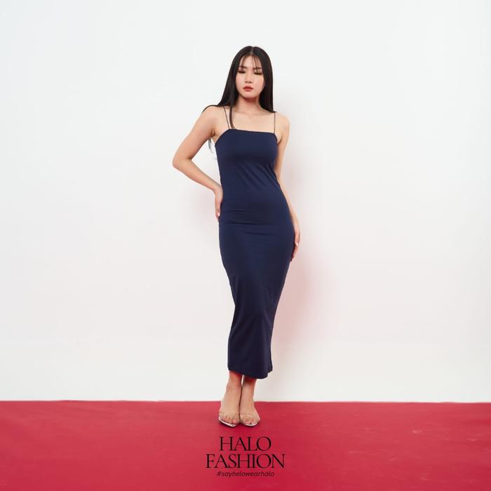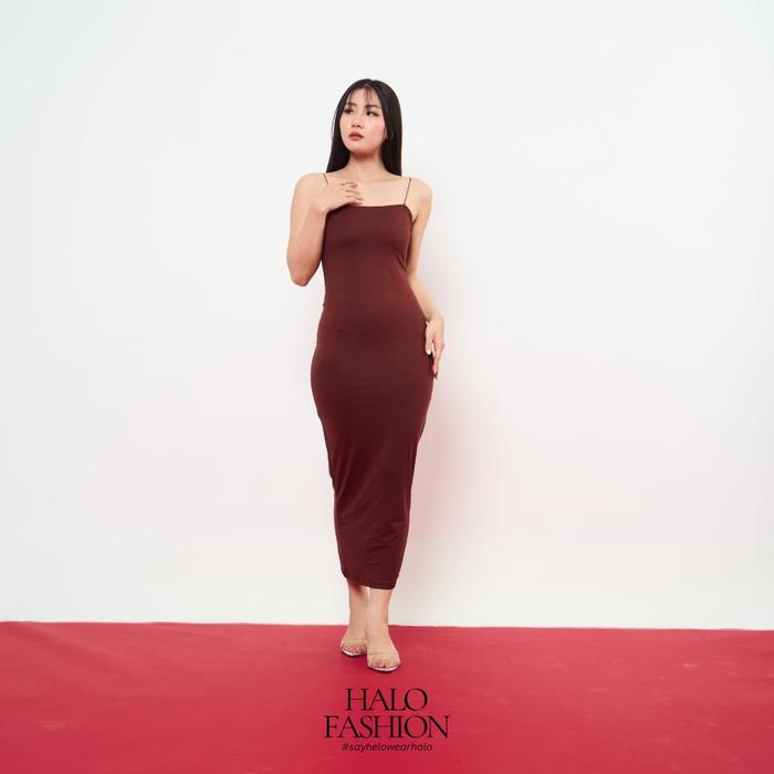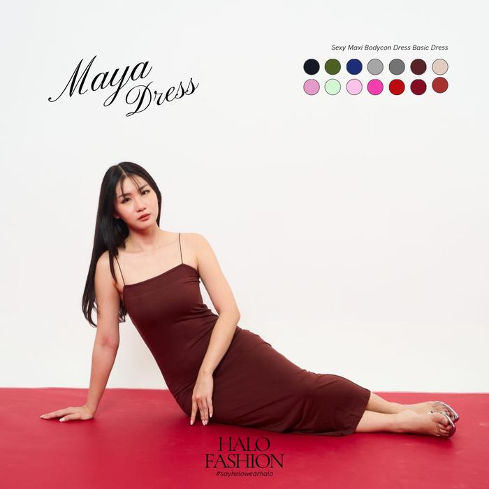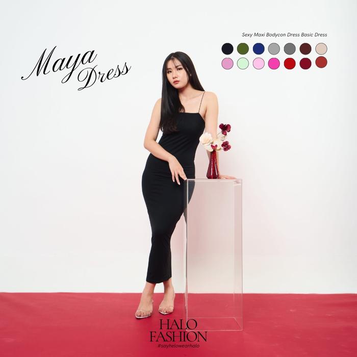 HALOFASHION MAYA SEXY MAXI BODYCON DRESS BASIC MIDI DRESS GAUN KOREAN FASHION PANJANG RAYON BAJU CASUAL WANITA SIMPLE MINI HITAM - BLACK, S