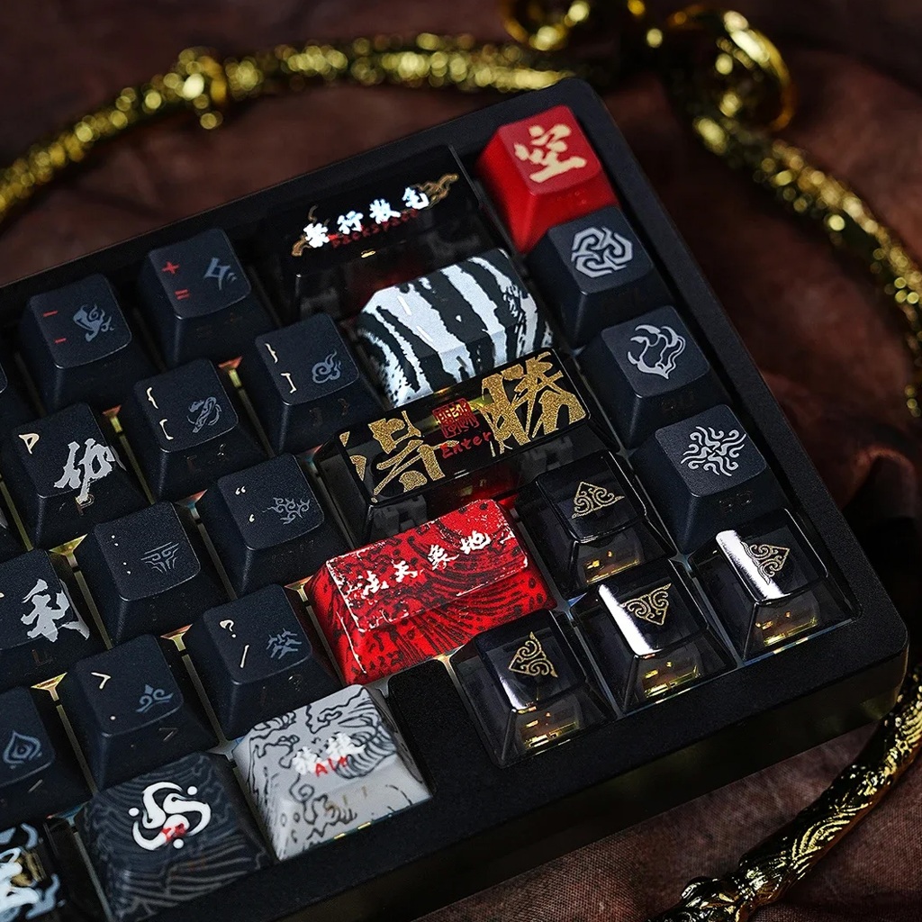 Titan Nation Black Myth Wukong Keycaps PBT Dyesub + PC Cherry Profile Keycaps Mechanical Keyboard