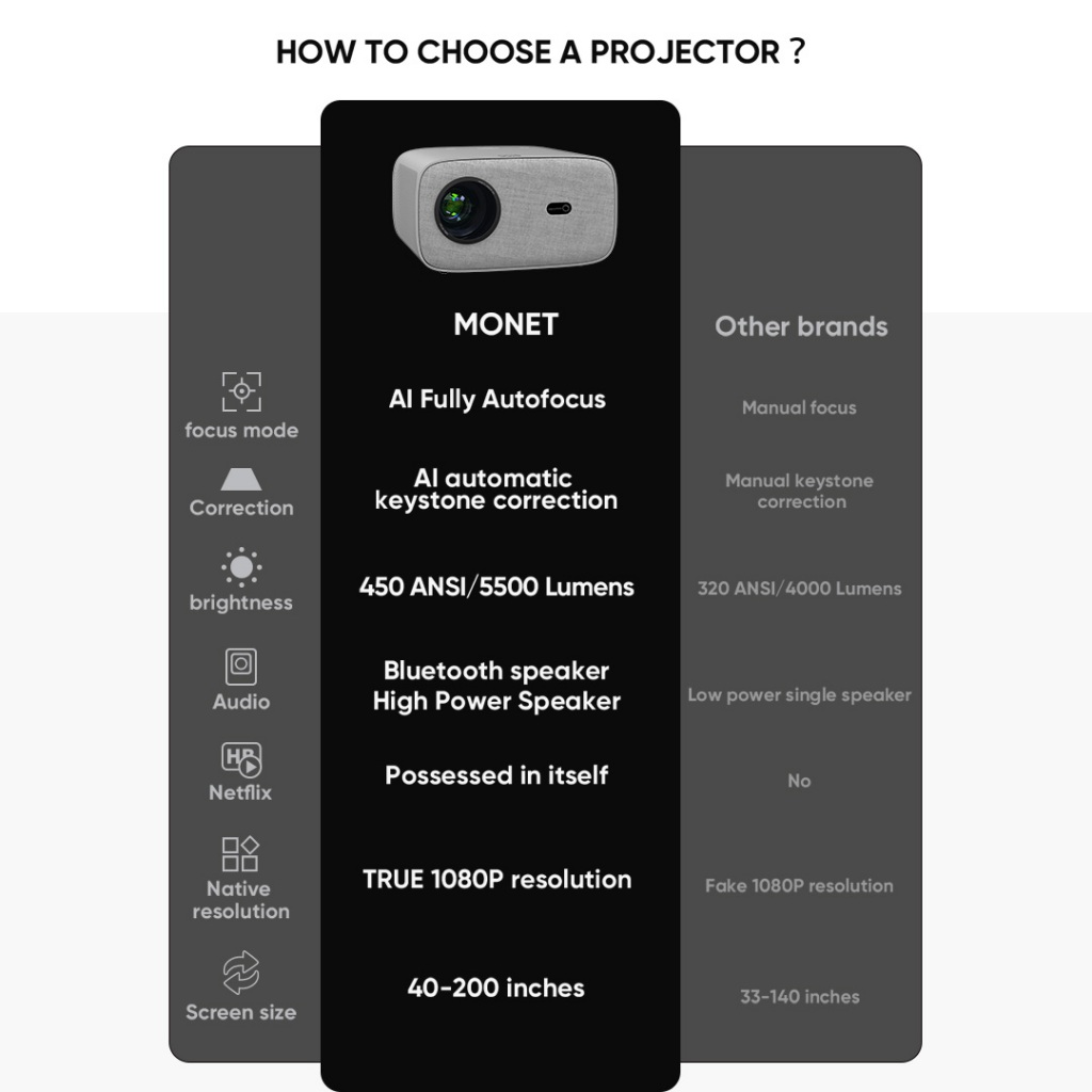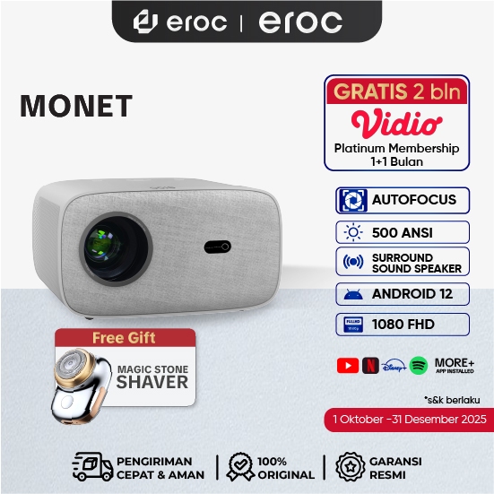 EROC Smart Proyektor LCD 450 ANSI Full HD Android 12 - Netflix - Display 200 Inch - Auto Focus - MONET