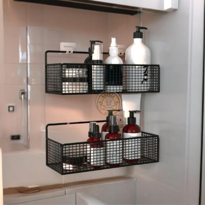RAK GANTUNG KAMAR MANDI TEMPEL DINDING GRATIS PEREKAT RAK SABUN KAMAR MANDI BENTUK PERSEGI - HITAM
