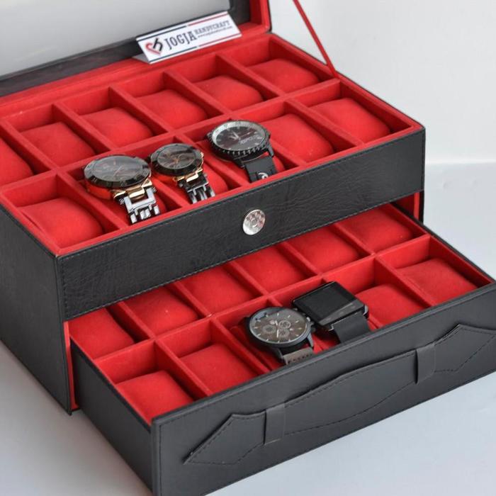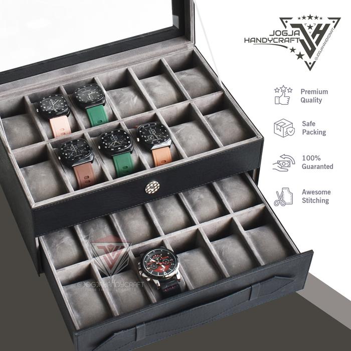 PROMO - KOTAK JAM TANGAN ISI 24 ALL COLOR / TEMPAT JAM / WATCH BOX PENYIMPANAN - FULL BLACK