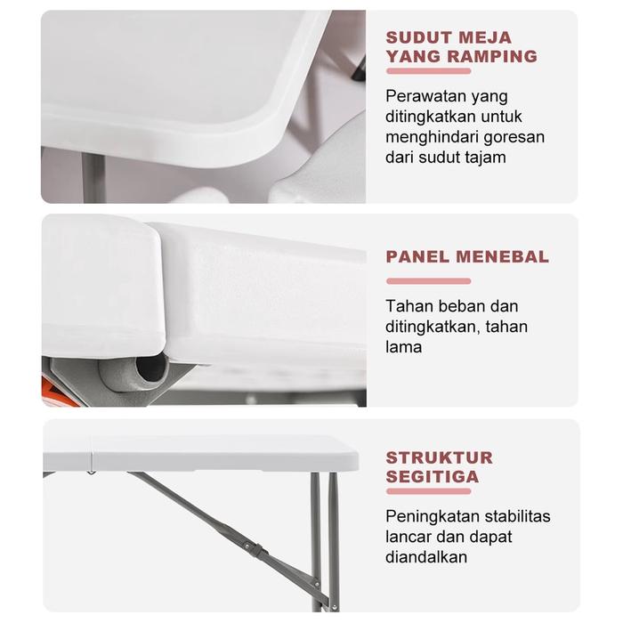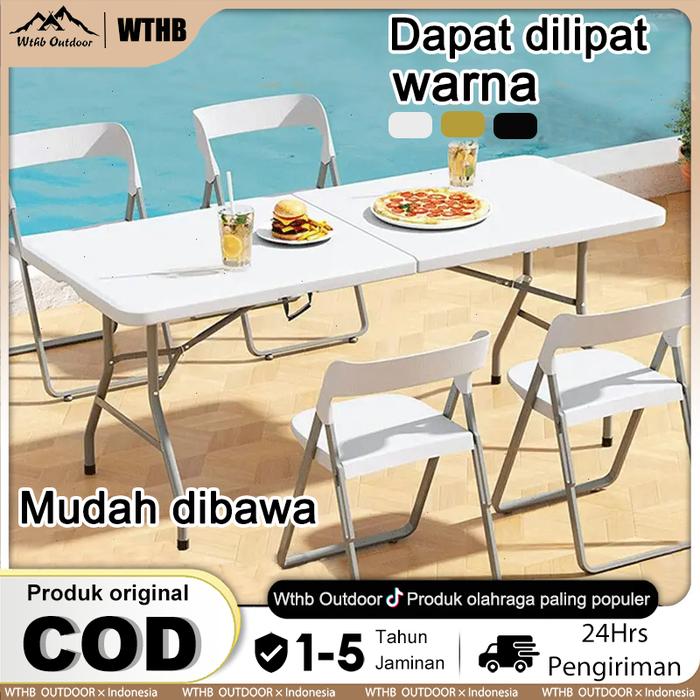 【WTHB】MEJA LIPAT PORTABLE1.2/1.5/1.8M MEJA LIPAT OUTDOOR LAPTOP MEJA LIPAT PORTABLE SERBAGUNA MEJA BELAJAR OUTDOOR INDOOR MEJA MAKAN MEJA TAMAN KUAT DAN RINGAN PLASTIK FURNITURE - 1.22M-PUTIH