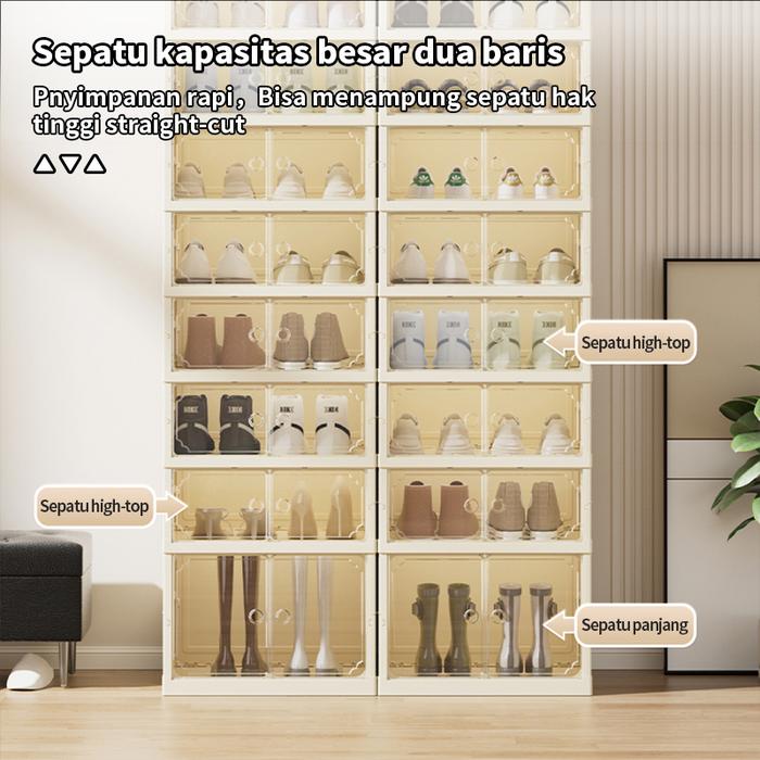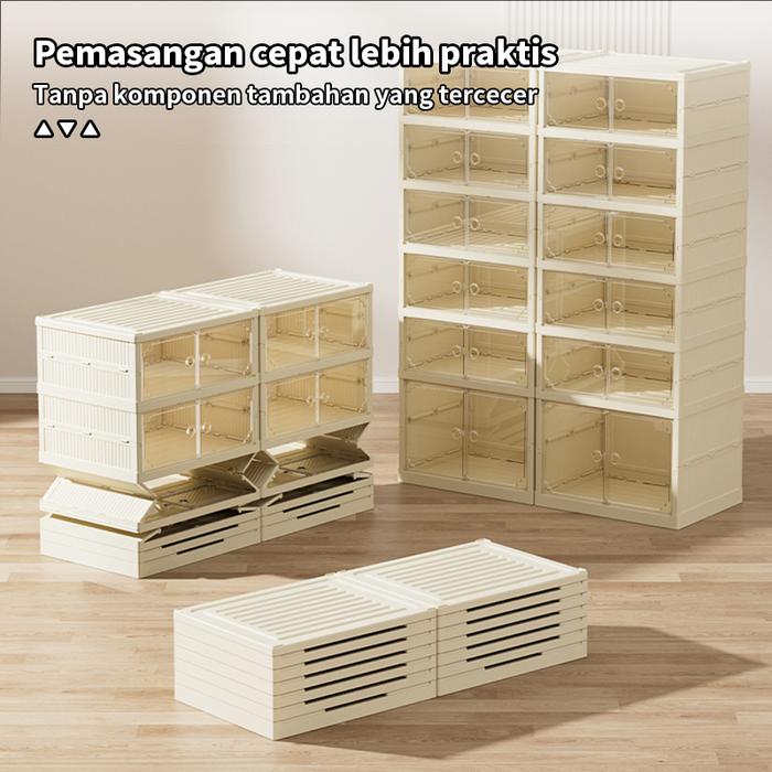 【TIDAK PERLU MENGINSTAL】 KOTAK SEPATU PLASTIC / RAK SEPATU TERTUTUP / READY STOCK / SEPATU LEMARI SEPATU TERTUTUP/ STORAGE BOX SEPATU FRONT DRAWER TYPE MAGNETIC - 443566 - 2+1LAYERS - PUTIH KREM