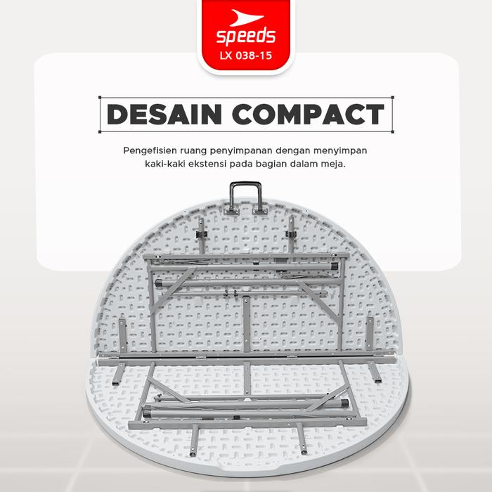 SPEEDS MEJA LIPAT PLASTIK PORTABLE 183X183X74CM ROUND FOLDING TABLE LINGKARAN INDOOR OUTDOOR PIKNIK SERBAGUNA MEJA MAKAN 038-15 - 135X135X74CM
