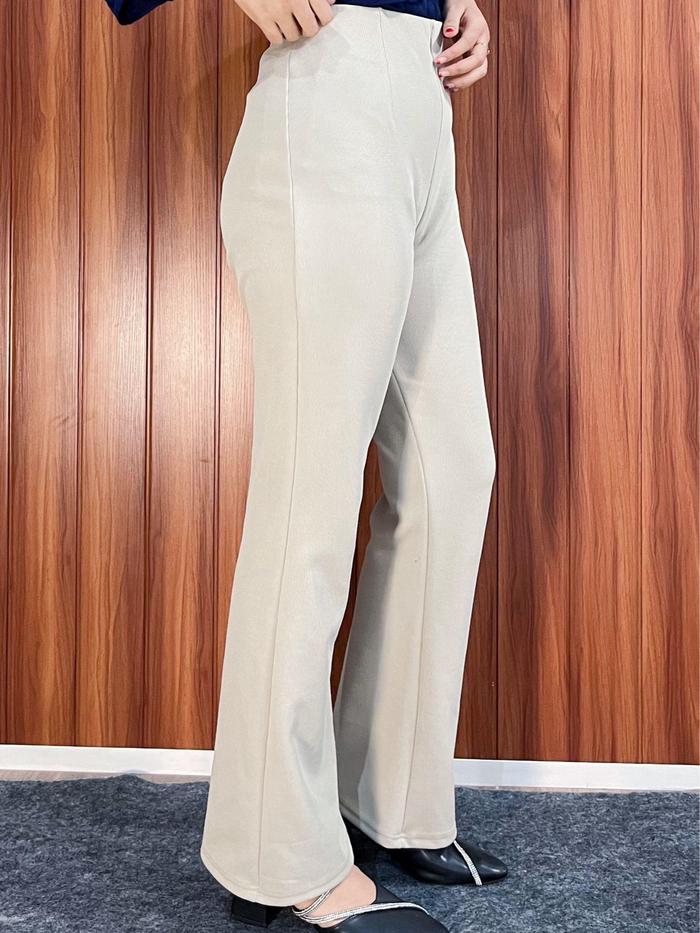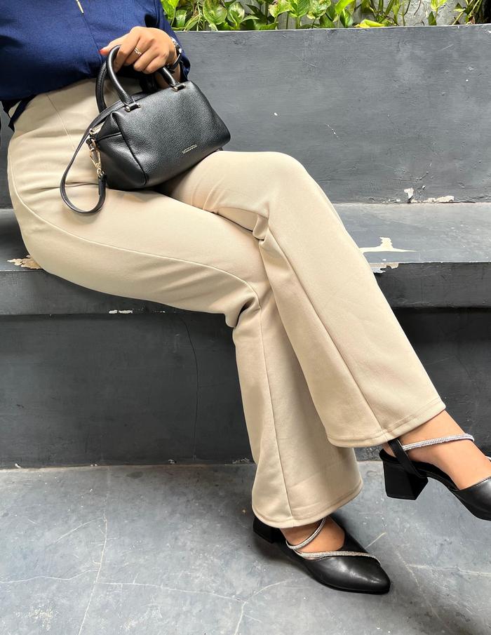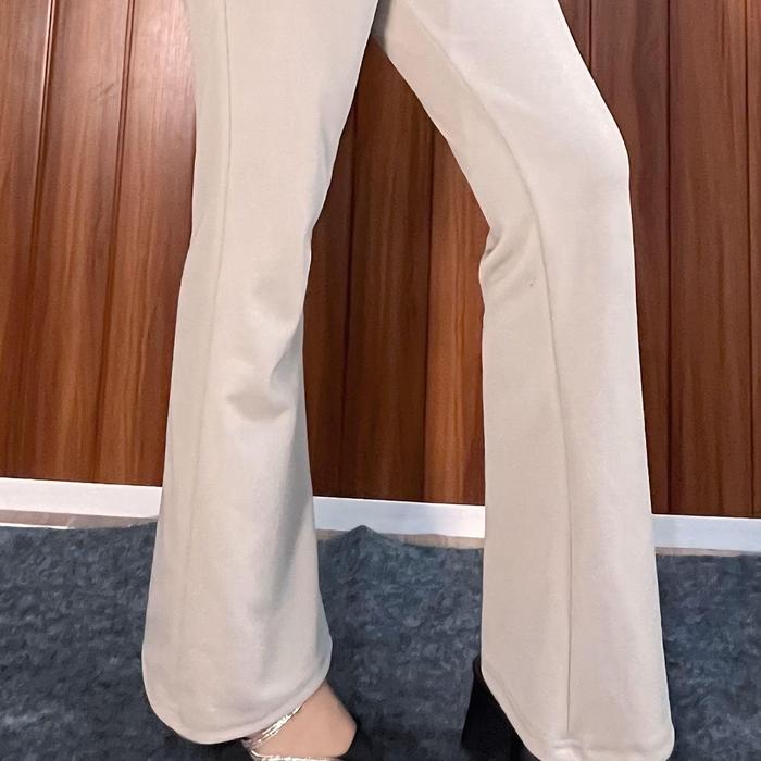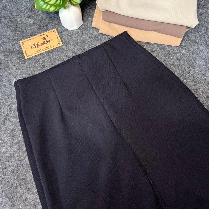 MUMTAZ - PREMIUM FLAREPANTS RIB KNIT CUTBRAY - CELANA PANJANG WANITA CELANA KOREAN STYLE - CELANA WANITA BAHAN KNIT JAPAN LINE BAWAHAN WANITA CUTBRAY PREMIUM. - BLACK, L