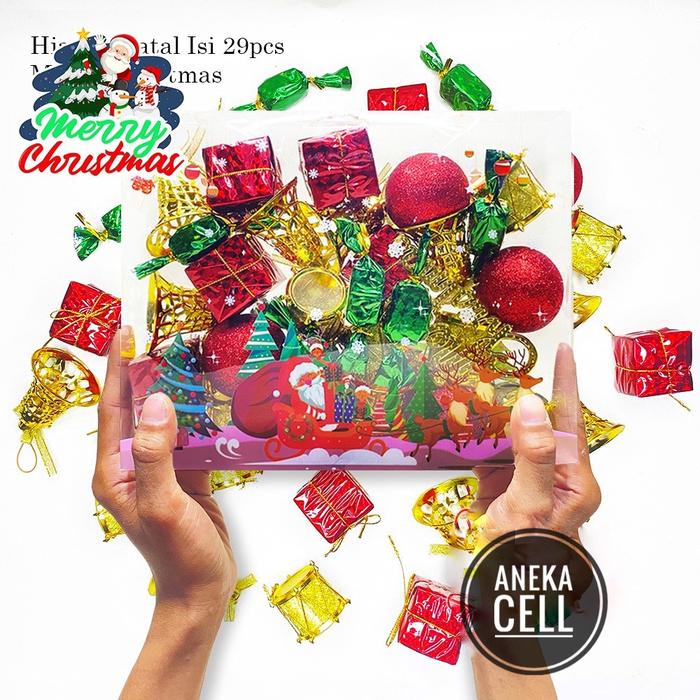 1 SET AKSESORIS MIX BOX NATAL HIASAN GANTUNG POHON NATAL BESAR LONCENG ORNAMEN DEKORASI MERRY CHRISTMAS BOLA ORNAMEN 4CM 3CM 5CM - 12PCRUMAH4CMA