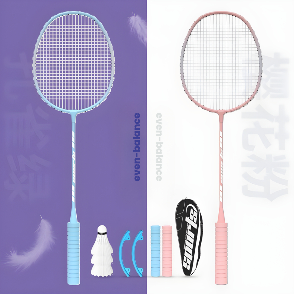 SET 2 PCS Raket Bulutangkis GRATIS TAS & 3 KOK Grip Spons Raket Badminton Dilengkapi Pegangan Spons