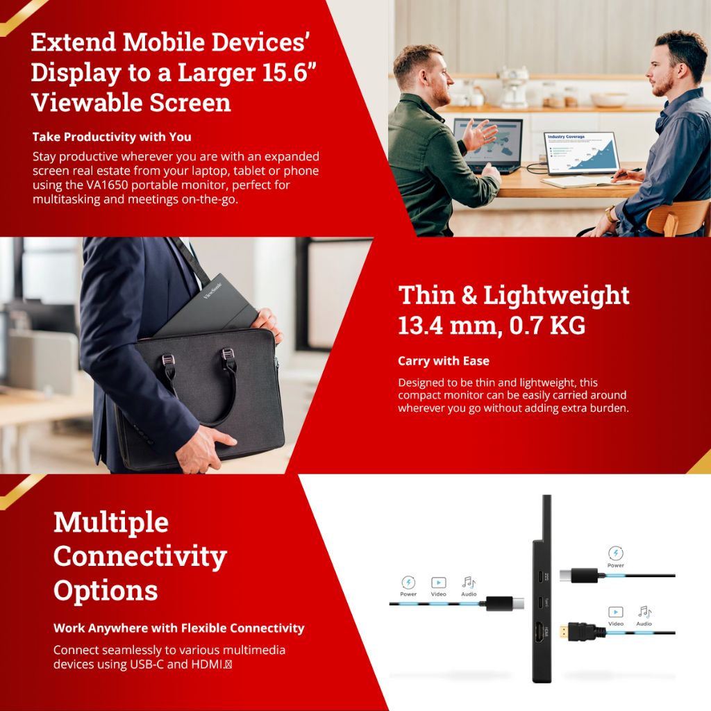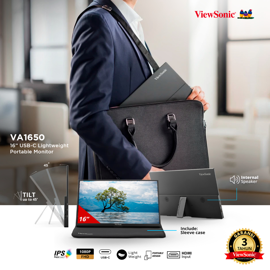 ViewSonic VA1650 16” USB-C Lightweight Portable Monitor