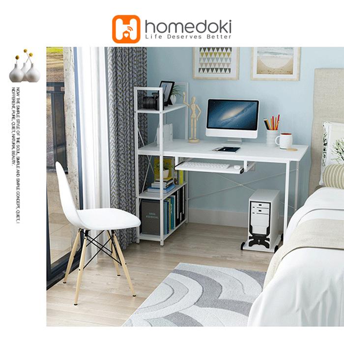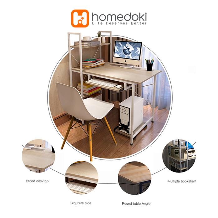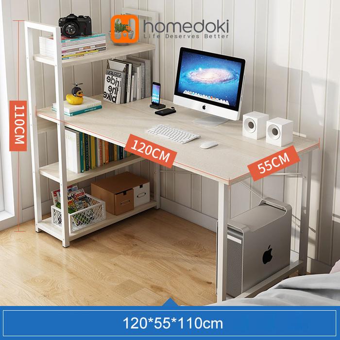HOMEDOKI MEJA KERJA KOMPUTER DESKTOP RUMAH TULIS SEDERHANA 120X55X110CM MDF HITAM MULTIFUNGSI KANTOR BELAJAR - FURNITURE - WOOD