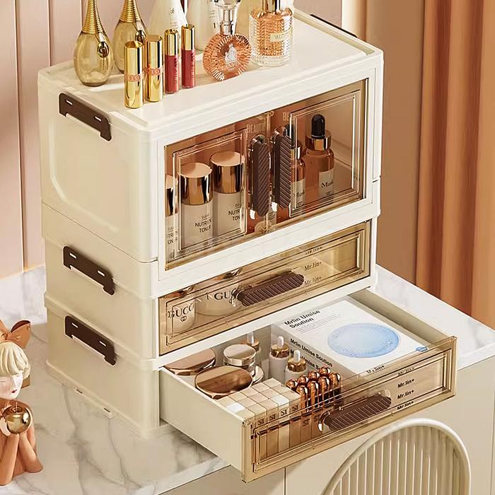 RAK KOSMETIK TRANSPARAN DESKTOP DENGAN LACI DAN LEMARI PLASTIK LIPAT MAINAN PENYIMPANAN - 2 LACI DAN 2 LEMARI