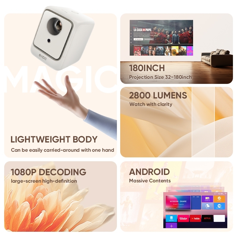 EROC Smart Proyektor LCD 2800 Lumens Android IOS Cast Netflix Compatible - MAGIC PRO