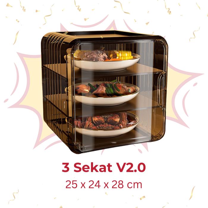 SUMO - KAGAMI TUDUNG PENYIMPANAN LAUK TINGKAT LEMARI TUDUNG SAJI LAUK ANTI DEBU TUDUNG SAJI MAKANAN SERBAGUNA LEMARI PENYIMPAN MAKANAN SUSUN TUDUNG SAJI MAKAN ANTI LALAT - V1 4 SEKAT