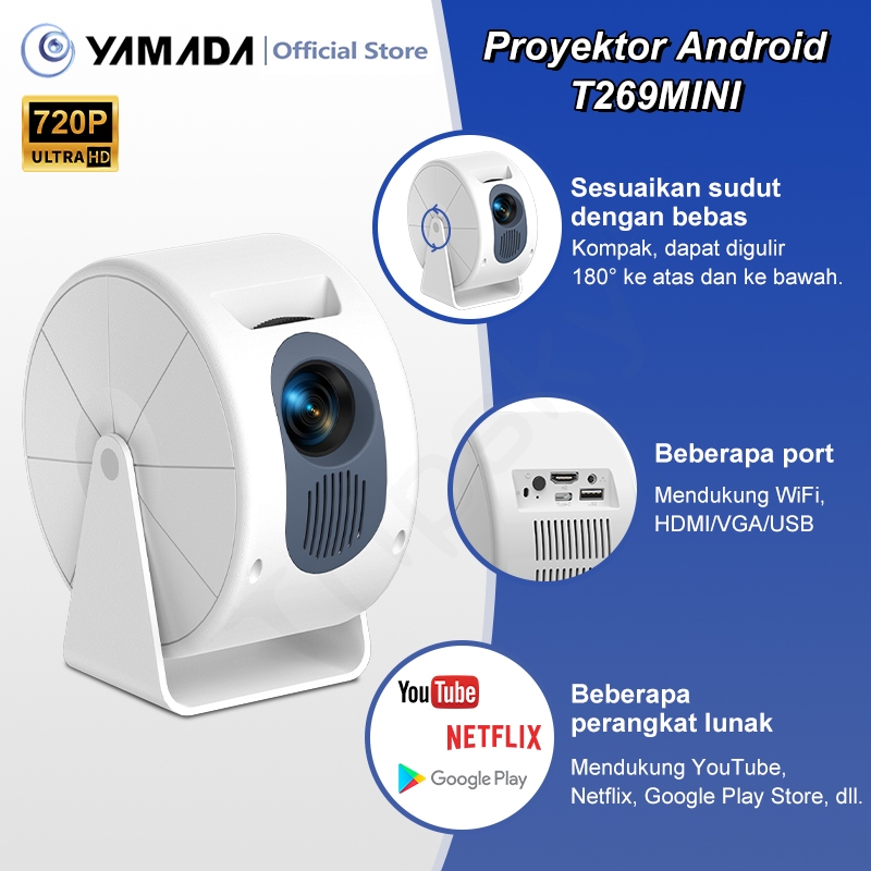 Proyektor T269mini Android 13.0 Bluetooth 5.0 Proyektor 2.4+5G Wifi 6 Portabel Minimalis Full HD