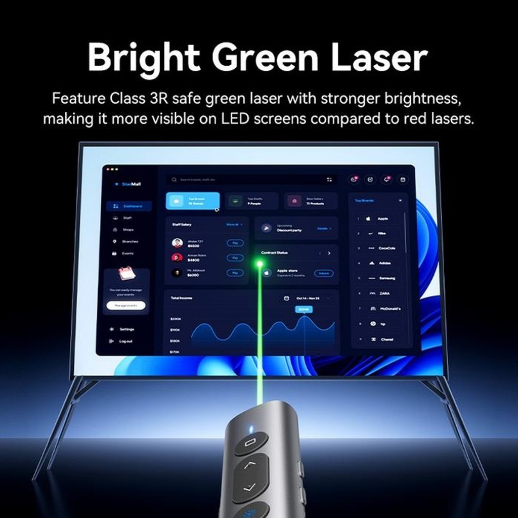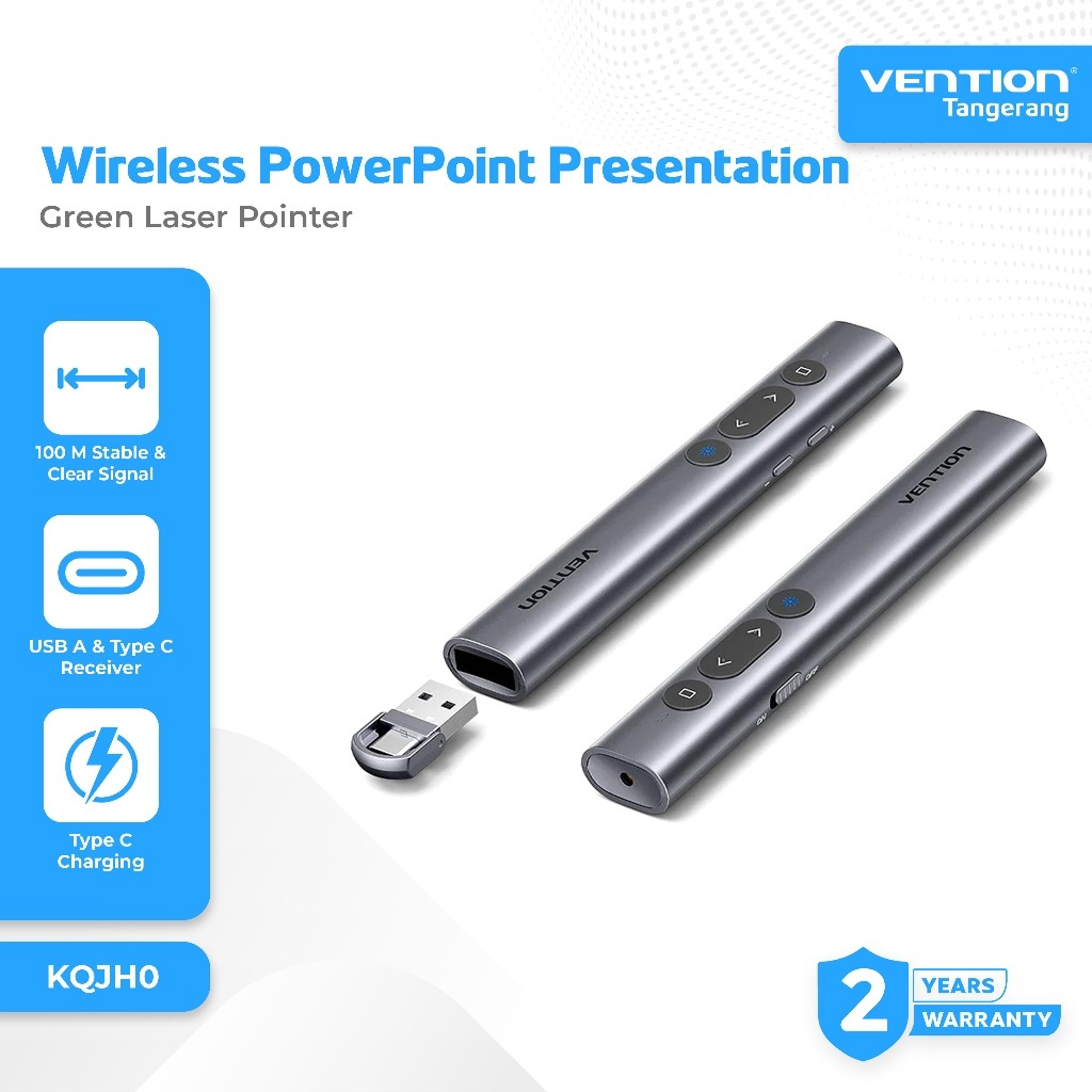 VENTION KQJH0 Wireless Green Laser Pointer 2.4Ghz with USB A Type C Charging Cable PowerPoint Presentation Warna Hijau Slide Presentasi