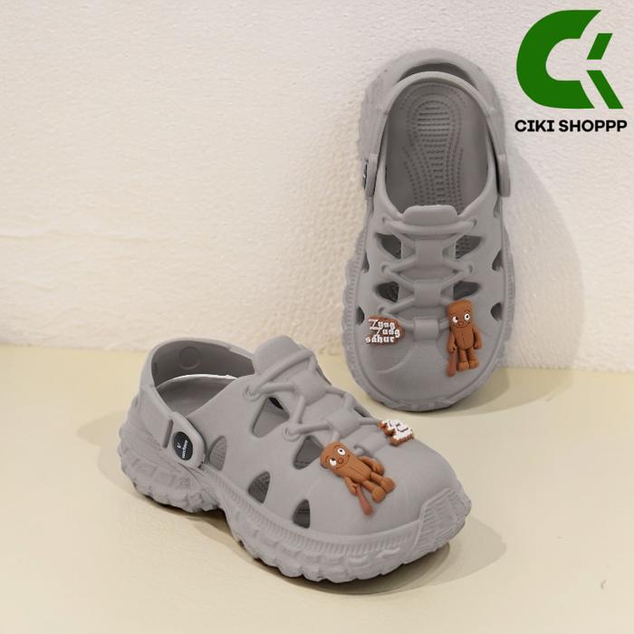 CIKI SANDAL BAIM KARET ANAK COWOK SANDAL EVA WARNA MOTIF KARTUN SANDAL ANAK LAKI-LAKI - HITAM, 24-25