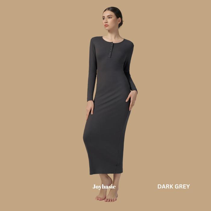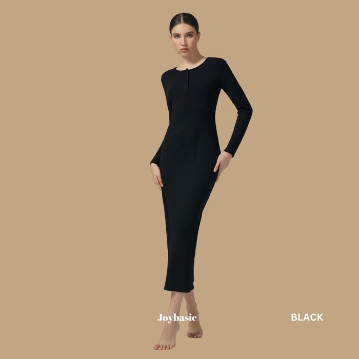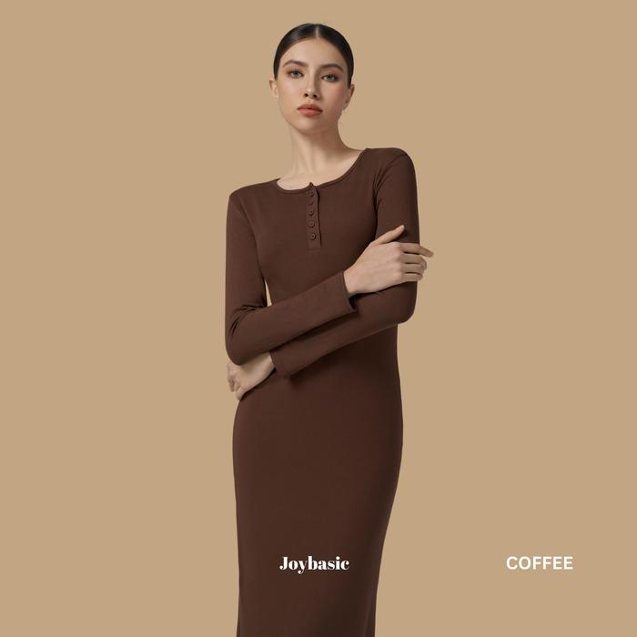 JOYBASIC TIMELESS FITTED LONG DRESS - COFFEE, S