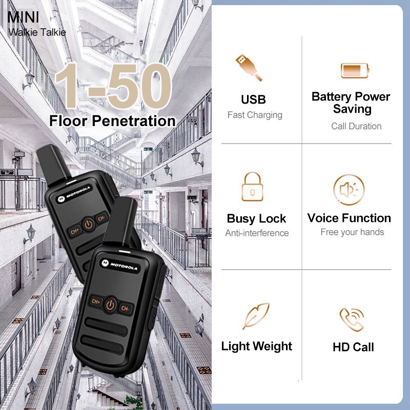 mini HT Walkie-Talkie MOTOROLA Baterai 9800mAh 120 hours standby radio 400-470MHZ Portable walkie-talkie Tahan air tahan debu tahan guncangan