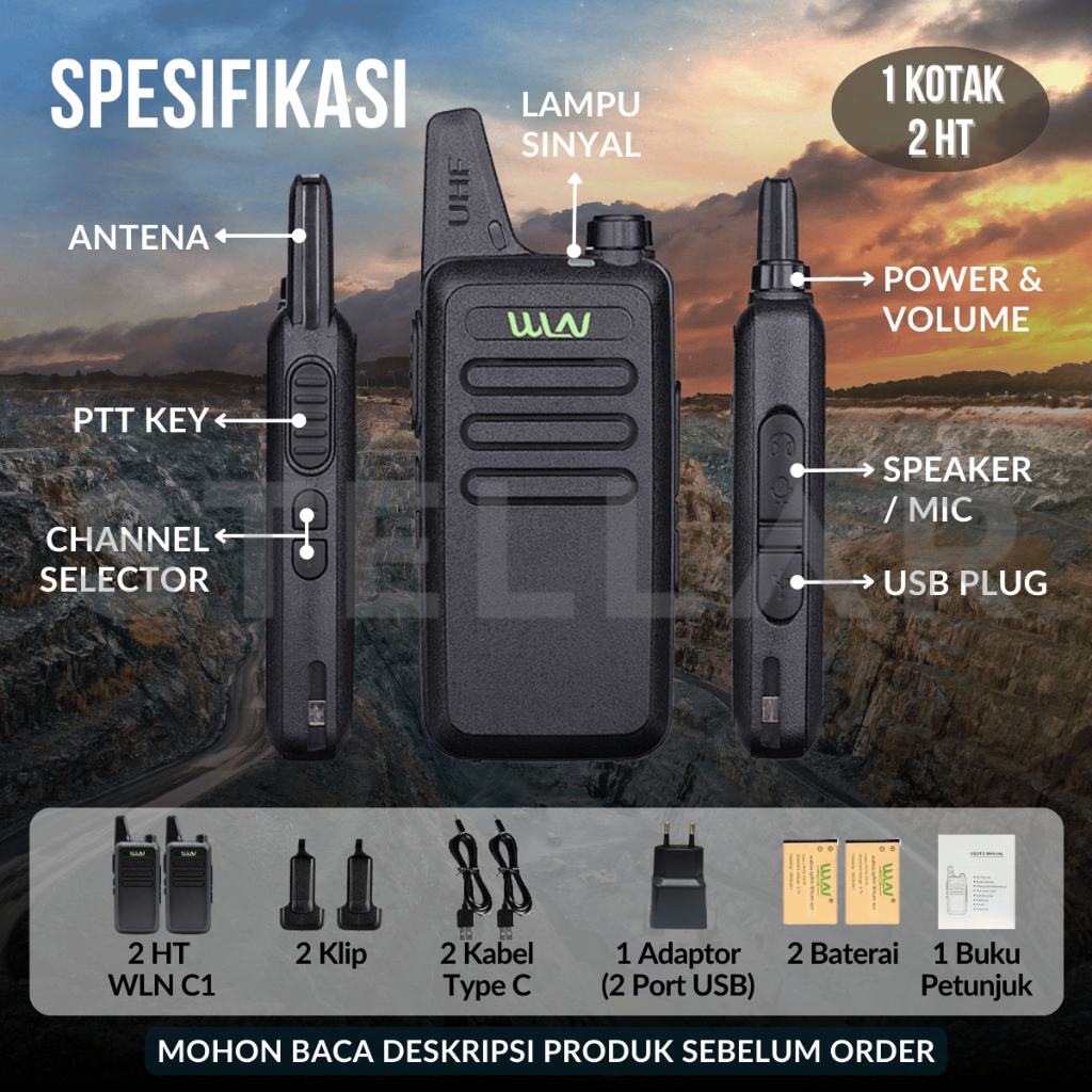 1 Kotak 2 HT WLN Walkie Talkie Full Set UHF KD C1 7 Hari Garansi | Two Way Radio Handy Talky HT KDC1