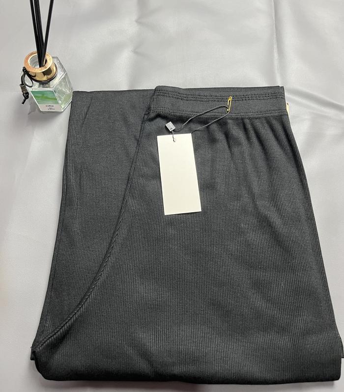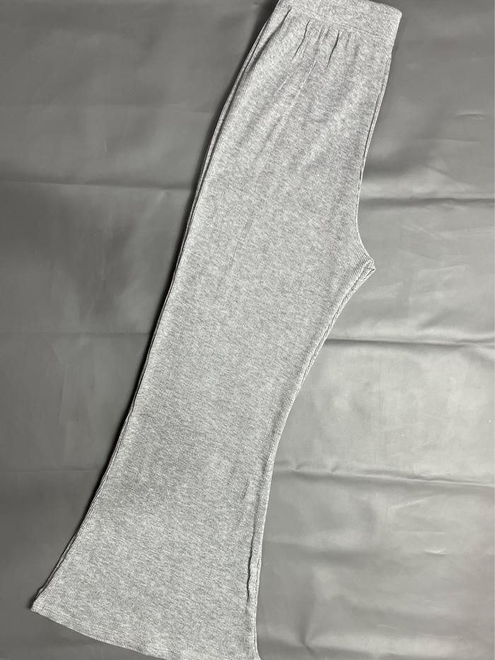 FLARE PANTS CUTBRAY RIB KNIT STRETCH WANITA CELANA PANJANG HIGHWAIST CASUAL - HITAM