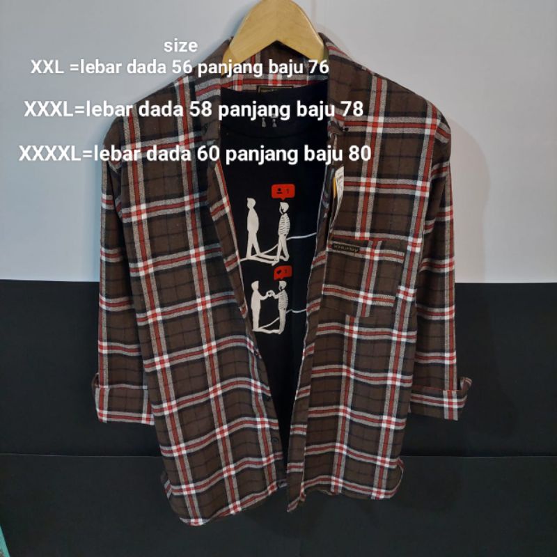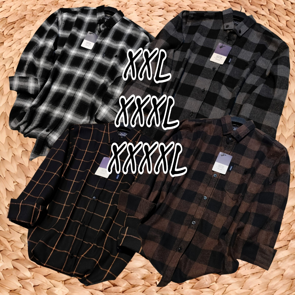 Kemeja Flanel Pria Jumbo Flannel Kotak-Kotak Lengan Panjang Original Branded Big Size XXL-XXXXL